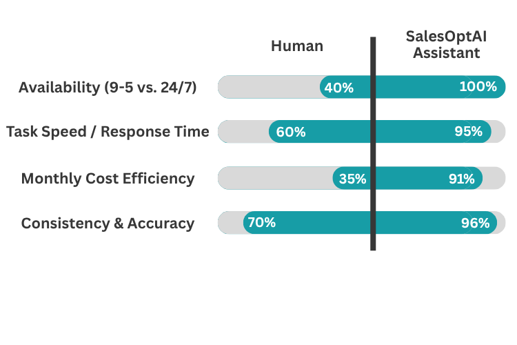 SalesOptAI Assistants works around the clock—handling inquiries, booking appointments, completing real tasks, and driving results.